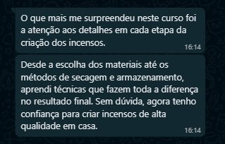 Junte-se à nossa Comunidade VIP de Criadores de Incensos, um espaço reservado onde entusiastas dessa prática se encontram para explorar e compartilhar suas experiências na arte dos incensos naturais. Mais do que apenas um curso, é um ambiente de aprendizado e conexão com líderes do setor em todo o mundo.