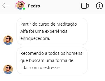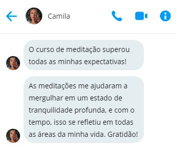 Com a adesão ao Curso de Meditação Alfa, você ganha ingresso imediato à nossa comunidade exclusiva de alunos. Este é um espaço vibrante e envolvente onde você poderá interagir com alunos de todo o Brasil!